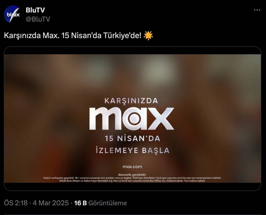 Dünya çapında 116.9 milyon abonesi bulunan Max, hem HBO içeriklerini, hem de Max’e özel yapımlar ve Warner Bros. Discovery’nin geniş film arşivinden birçok seçkisini kullanıcılarına sunuyor. Bu içeriklerin birçoğu zaten BluTV’de yer alıyordu. Ancak Warner Bros, önceki yıllarda yaptığı lisans anlaşmaları sayesinde bazı HBO dizilerini beIN Connect veya TV+ gibi platformlara da vermişti. Artık HBO Max Türkiye’de resmi olarak yayına gireceği için, bundan sonra yeni HBO yapımları sadece Max üzerinden erişilebilir olacak.