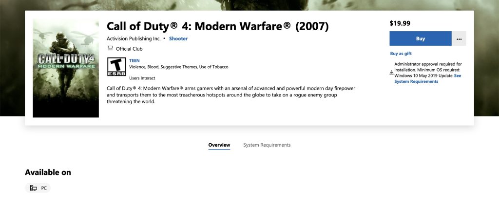 “Call of Duty 1, Call of Duty 2 ve Call of Duty 4: MW 2007 PC için Microsoft Store’da yerini aldı.