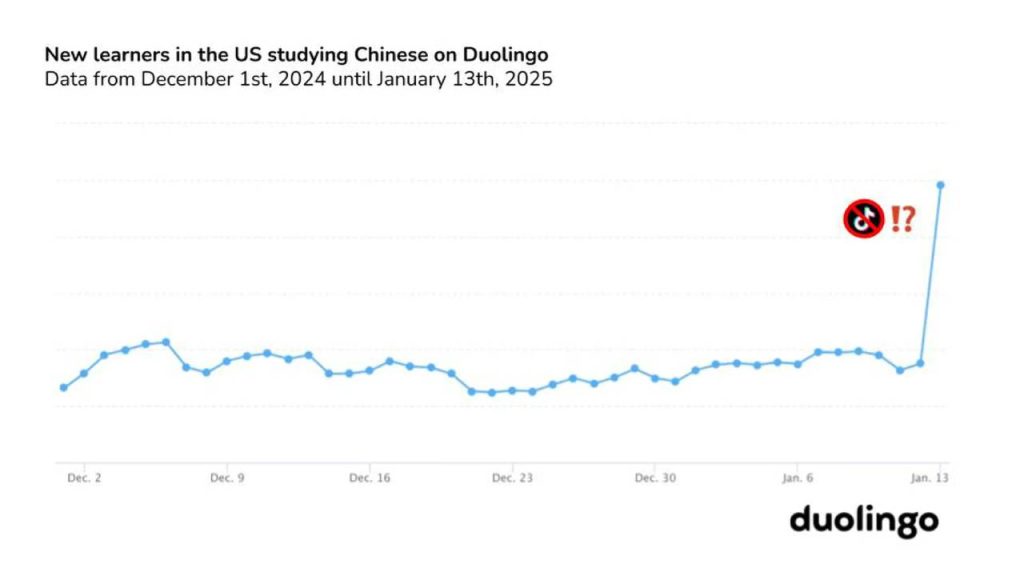 Duolingo, olası TikTok yasağında gerçek kazananı oldu. Dil öğrenme uygulaması, geçen yıla kıyasla ABD’den gelen Mandarin dili öğrenicilerinde yüzde 216’lık bir artış bildirdi.