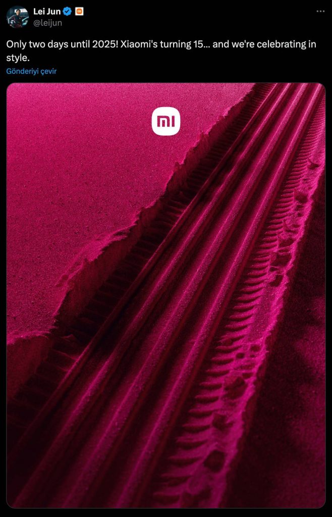 Xiaomi, 15. yılını kutlamaya hazırlanıyor. Bu önemli dönüm noktası öncesinde Xiaomi CEO’su Lei Jun, X platformunda gizemli bir tanıtım görseli paylaştı. Görsel, lastik izleriyle dikkat çekiyor ve otomobille ilgili bir duyurunun yolda olduğunu düşündürüyor. Ancak bu gizemli paylaşımın neye işaret ettiğini merak edenler için net bir açıklama henüz yapılmış değil.